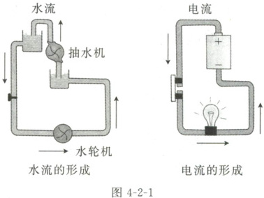 1. 小明同学通过观察水流的形成,对电流产生的原因进行猜想,如图4-2-1所示,这采用了