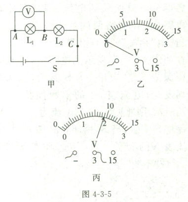 。(2)排除故障后,闭合开关$S$,电压表的示数如图4-3-5丙所示,此时灯$L_1$两端的电压为