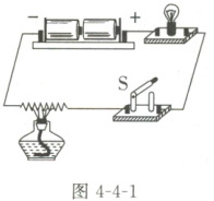 4. 用电源、灯泡、导线、开关和钨丝组成如图4-4-1所示的电路,闭合开关,灯泡发光,再用酒精灯对钨丝加热,会发现灯泡变