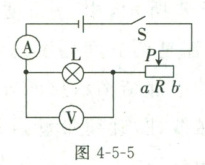 7. 如图4-5-5所示,闭合开关$S$前,滑动变阻器的滑片$P$应移到