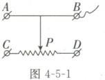 3. 如图4-5-1所示,电路中一根导线已经与滑动变阻器的$B$接线柱连接,当滑动变阻器的滑片$P$向左移动时,要使滑动变阻器连入电路中的电阻变小,另一根导线应与滑动变阻器的