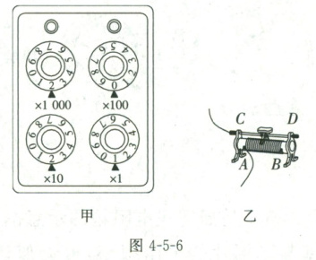 $\ \Omega$。如图4-5-6乙所示,当滑动变阻器的滑片向左滑动时,滑动变阻器连入电路中的电阻变小