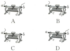 4. 当滑动变阻器的滑片向 $b$ 端滑动时,下列四种接法中,变阻器连入电路中的阻值变大的是(