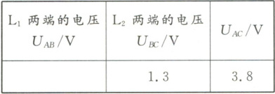 $V$。小明分析实验数据得出结论:串联电路的总电压等于各用电器两端的电压之和。此实验在设计方案上存在的不足之处是只进行了一次实验,结论具有偶然性