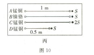 【进行实验】为了验证猜想,他们用如图 10 乙所示的器材进行实验,如果他们要研究导体的材料对电阻的影响,应选择将图 10 丙中的