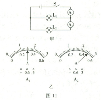 (3) A1示数1.5A,A2示数0.5A,通过L1的电流1A