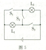 )A.闭合开关$S_{2}$,断开开关$S_{1}、S_{3}$时,灯$L_{1}、L_{2}$并联