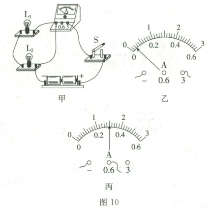 (4)闭合开关进行实验,正确测出电路中的电流,如图10丙所示,则该处电流大小是