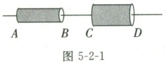 6.由不同材料制成的金属棒$AB$和$CD$,其长度相同,但横截面积不同,两者按如图5-2-1所示的方式连接在一起后接在电源两端,则通过$AB$的电流