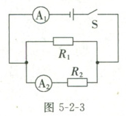 8.如图5-2-3所示,闭合开关$S$,两电流表示数之比为$4:3$,则$R_1$与$R_2$两端的电压之比$U_1:U_2=$