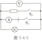 13. 如图5-4-5所示,电源电压恒定,闭合开关$S_1$,灯泡发光,再闭合开关$S_2$时,观察到的现象是(