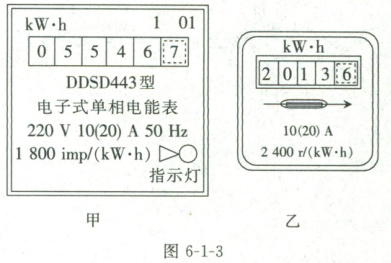 6. 图 6-1-3 甲所示的是小明同学在楼下拍到的电能表照片,他仔细观察照片后,得到下列结论,其中正确的是(