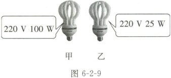 3. 甲、乙两只节能灯的铭牌如图6-2-9所示,将两灯串联在电路中,两灯都发光,