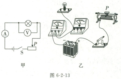 (1)参照图6-2-13甲的电路图,用笔画线代替导线将图6-2-13乙的实物电路补充完整。