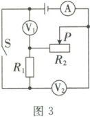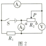 2. 如图 2 所示,电源电压不变,闭合开关 $S$ 后,滑动变阻器的滑片 $P$ 自中点向 $b$ 端移动的过程中,电压表的示数