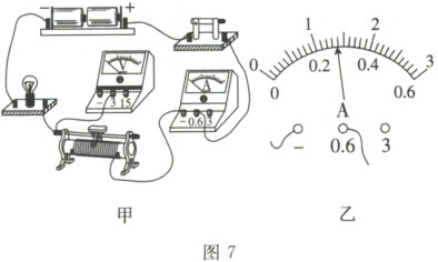 (4)当小灯泡正常发光时,电流表的示数如图 7 乙所示,电流大小为