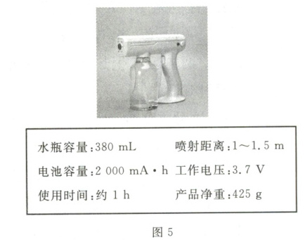 6.图 5 所示为一款充电式酒精喷雾器及其部分参数。用喷雾器给物品消毒时,人们闻到酒精气味,这是
