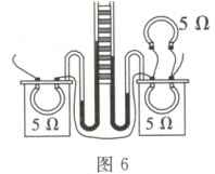 10.图 6 所示的是“探究电流通过导体时产生热量的多少跟什么因素有关”的实验装置,两个透明容器中密封着等量的空气。下列说法正确的是(