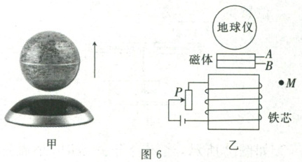 9. (多选)小鑫同学看到了一个悬浮地球仪摆件(图 6 甲),他利用选购的材料制作了一个仿制品(图 6 乙),并成功地将他的地球仪稳定地“悬浮”起来了。下列说法正确的是(