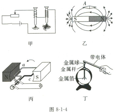 7.(多选)图8-1-4所示的是关于电与磁的四幅图。下列描述正确的是(