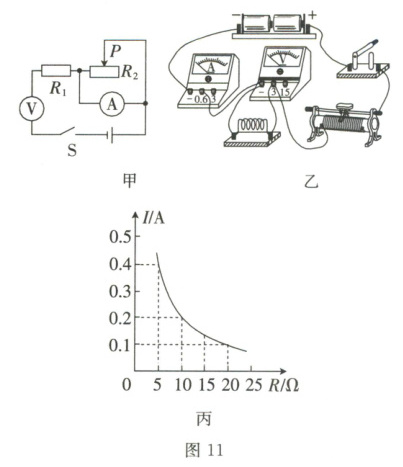 (3)实验中多次改变定值电阻的阻值,将实验数据绘制成如图11丙所示的图像。由图像可以得出结论:电压一定时,通过导体的电流与导体的电阻成
