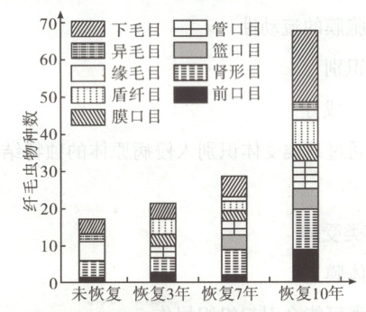 B.退耕还林期间纤毛虫多样性及各目的种类数不断增加