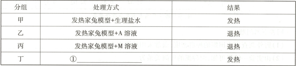 (3)①损毁下丘脑的发热家兔模型+M溶液 ②M与药物A一样具有解热作用 ③M与药物A一样具有解热作用并通过影响下丘脑体温调节中枢调控体温
