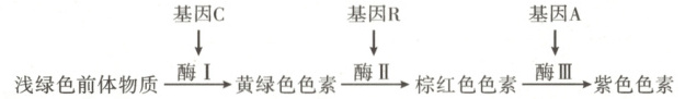 (1)研究发现,水稻颖壳的紫色、棕红色、黄绿色和浅绿色的形成与类黄酮化合物的代谢有关。假设显性基因C、R、A控制颖壳色素的形成,且独立遗传,相应的隐性等位基因不具有该效应。色素合成代谢途径如图。