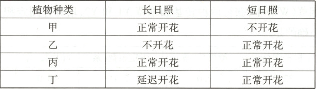 5. [2025·湖北卷,8T,2分]科研人员对四种植物进行不同光照处理实验,记录开花情况如表。根据实验结果,以下推断合理的是
