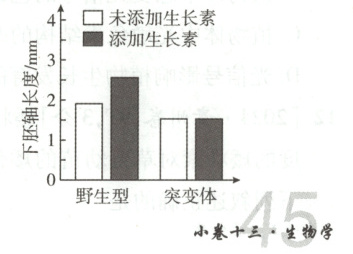 解题思路 根据题干信息,油菜素内酯可促进Z蛋白进入细胞核调节基因表达,“Z蛋白参与了油菜素内酯的信号传导,A正确;图示显示生长素处理能促进野生型下胚轴生长,而由题干可知油菜素内酯也能促进下胚轴生长,B正确;图示显示生长素处理野生型(有Z蛋白)能促进下胚轴生长,但生长素处理Z基因突变体缺失突变体(无Z蛋白)组与未处理突变体组的下胚轴长度一致,即生长素处理突变体不能促进下胚轴生长,说明生长素促进下胚轴生长依赖Z蛋白,C正确;由题干及题图信息无法判断油菜素内酯促进下胚轴生长是否依赖于生长素,D错误。