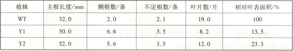 9. [2025·浙江1月卷,14T,2分]科学家将拟南芥的细胞分裂素氧化酶基因AtCKX1和AtCKX2分别导入野生型烟草(WT)中,获得两种转基因烟草Y1和Y2,培养并测定相关指标,结果如表所示。下列叙述正确的是