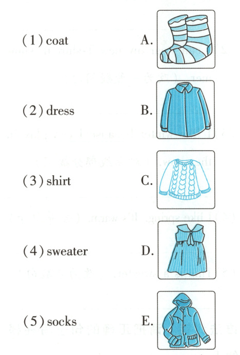 1. 单词连连看。将衣物与图片匹配。