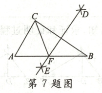 7. 如图,在$\triangle ABC$中,$\angle A = 60°$,$\angle B = 35°$,分别以点$B$,$C$为圆心,大于$\frac{1}{2}BC$的长为半径画弧,两弧相交于$D$,$E$两点,画直线$DE$与边$AB$相交于点$F$,连接$CF$,则$\angle ACF$的度数为 (