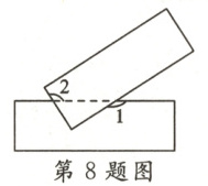 8. 将两把直尺按如图所示的方式放置,若$\angle 2 = 125^{\circ}$,则$\angle 1$的度数为 (