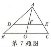 7. 如图,已知点$F$是$\triangle ABC$的重心,连接$AF$并延长交$BC$于点$G$,过点$F$作直线分别交$AB$,$AC$于点$D$,$E$,则下列说法正确的是 (