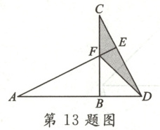 13. 如图,CB⊥AD,AE⊥CD,垂足分别为B,E,AE,BC相交于点F.若AB=BC=16,CF=8,连接DF,则图中阴影部分的面积为