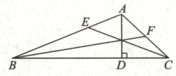 20. (8分)如图,$AD$和$BF$分别是$\triangle ABC$的高和角平分线,$AE$是边$BC$上的中线.