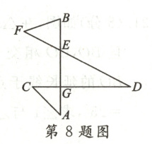 8. 如图,这是由线段AB,CD,DF,BF,CA组成的平面图形,∠D=28°,则∠A+∠B+∠C+∠F的度数为 (