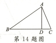 14. 翻折常常能为问题的解决提供思路和方法.如图,在$\bigtriangleup ABC$中$,\angle C = 2\angle B,AD \perp BC$,垂足为$D$,则$BD,CD,AC$之间的等量关系是