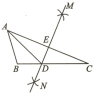 17. (6分)如图,在$\bigtriangleup ABC$中,分别以点$A$和点$C$为圆心,大于$\frac{1}{2}AC$的长为半径作弧,两弧相交于点$M,N$,直线$MN$与$AC,BC$分别相交于点$E,D$,连接$AD$.