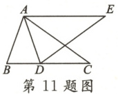 11. 如图,已知$\bigtriangleup ABC \cong \bigtriangleup ADE$,且点$B$与点$D$对应,点$C$与点$E$对应,点$D$在$BC$上,$\angle BAE = 114^{\circ}$,$\angle BAD = 40^{\circ}$,则$\angle E$的度数是$^{\circ}$.