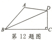12. 如图,已知在四边形$ABCD$中,$\angle BCD = 90^{\circ}$,$BD$平分$\angle ABC$,$AB$=6,$BC$=9,$CD$=4,则四边形$ABCD$的面积是