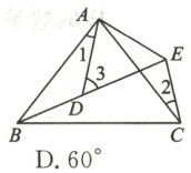 10. 如图,$AB$=$AC$,$AD$=$AE$,$\angle BAC$=$\angle DAE$,$\angle 1$=$20^{\circ}$,$\angle 2$=$25^{\circ}$,则$\angle 3$的度数为