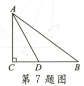 7. 如图,在$\bigtriangleup ABC$中,$\angle C = 90^{\circ}$,$AD$是$\angle BAC$的平分线.若$BC$=5,$BD$=3,则点$D$到$AB$的距离是