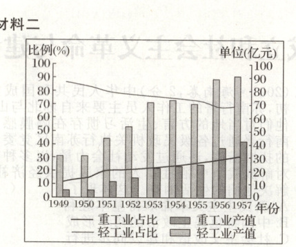 图2 1949—1957年上海轻、重工业产值和占比变化情况