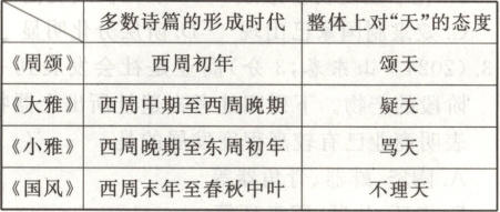 15.C [西周时的天命观强调“敬天保民”,凸显人的主观能动性,对“天”的态度也更有怀疑精神,即人文意识逐渐增强,C项正确;题干信息:西周初年至春秋中叶,《诗经》中对“天”的态度经历了从“颂天”到“疑天”到“骂天”再到“不理天”的变化。结合史实,随着血缘关系淡化和诸侯实力增强,天子权威在弱化,A项错误;天道观,即关于世界本原的根本观点,天道观随着社会发展有不同的理解,但选项中持续衰落的表述不当,B项错误;材料中并未体现性善或性恶的人性论,“成熟”一词的表述也不恰当,D项错误。]