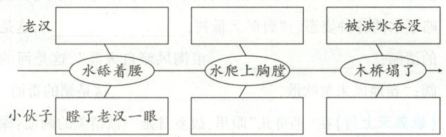 3.(从上到下,从左到右)揪出小伙子 把 小伙子推上木桥 推了老汉一把 被洪 水吞没