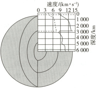 地震发生后,纵波先到达地面,建筑物并不会马上倒塌,随后横波带来的水平晃动是造成建筑物破坏及人员大量伤亡的主要原因。这个过程一般间隔约12秒,这就是地震救援所说的“黄金12秒”。下图为地球圈层结构及地震波传播速度示意图。据此完成1~2题。