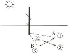 平地上,在木棍影子的