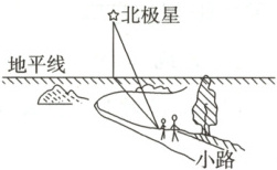 (2)题,北极星在侦察兵的正北方,根据正北的位置,再确定南、东和西的位置,进而可以确定小路的延伸方向。